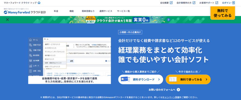 公式サイトでは、自動仕訳や金融機関連携によるデータ入力の効率化により、経理業務の時間を最大90%削減できるとしています。幅広い金融関連サービスとの連携が、手入力の工数を大きく減らすポイントです。
