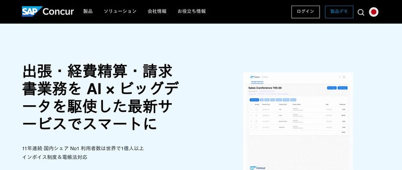 株式会社コンカーが提供する、出張管理・経費精算・請求書管理を統合したシステムです。海外拠点を持つ企業や多通貨対応が必要な企業での活用実績が豊富で、グローバルで広く導入されています。