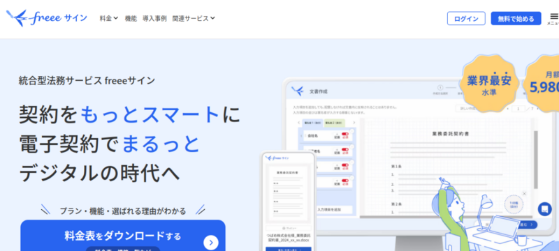 | freeeサイン | 要問い合わせ | 5,980円~ | バックオフィス全体を一気通貫で管理可能 |
