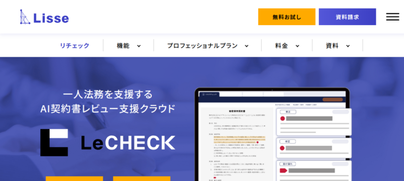 | LeCHECK | 要問い合わせ | 要問い合わせ | 弁護士監修で非法務でも使えるレビュー支援 |