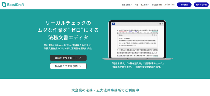 | BoostDraft | 要問い合わせ | 要問い合わせ | Word上で動作する契約書レビュー支援 |