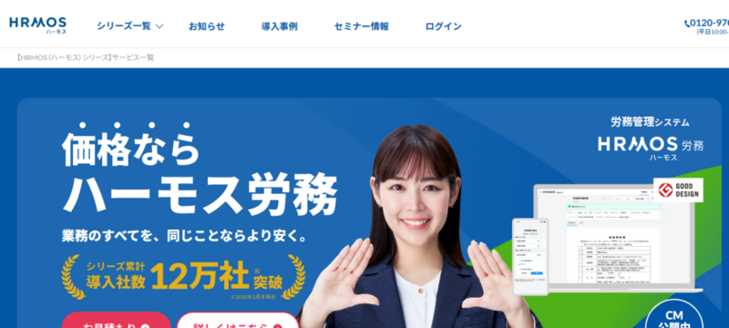 | HRMOS(ハーモス) | 要問い合わせ | 550円/月〜 | 累計12万社。採用〜人財活用〜給与まで6システムをカバー |