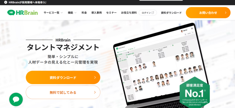 株式会社ビズリーチが運営しており、2026年2月末時点で累計12万社以上の導入実績を持っています。月額550円〜という料金設定で、必要なシステムだけを選んで組み合わせられるため、段階的な導入がしやすい設計です。採用管理から人財の活用・評価まで一連のデータをつなげて管理できる点が強みです。