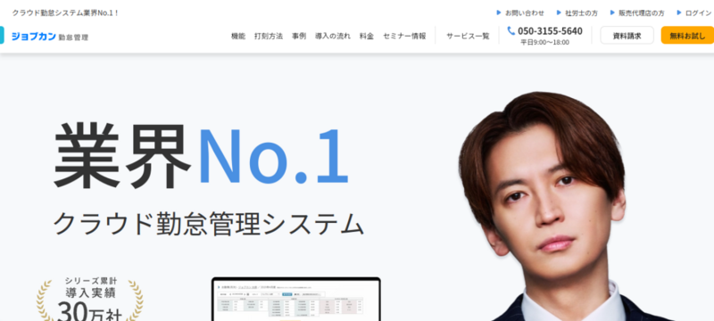 | ジョブカン勤怠管理 | 0円 | 200円/ユーザー〜 | 30万社超(シリーズ累計)。低コストで使いやすい |