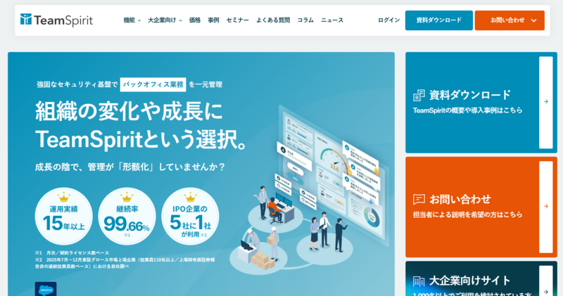 | チームスピリット | 要問い合わせ | 24,000円~ | Salesforce連携。勤怠・経費・工数を一元管理 |