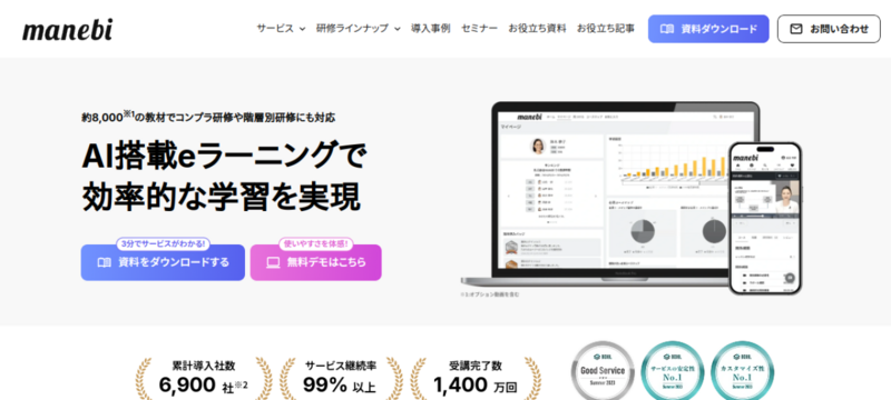 社内研修のコスト削減とコンテンツの標準化を目指す中小〜中堅企業に向いているサービスです。