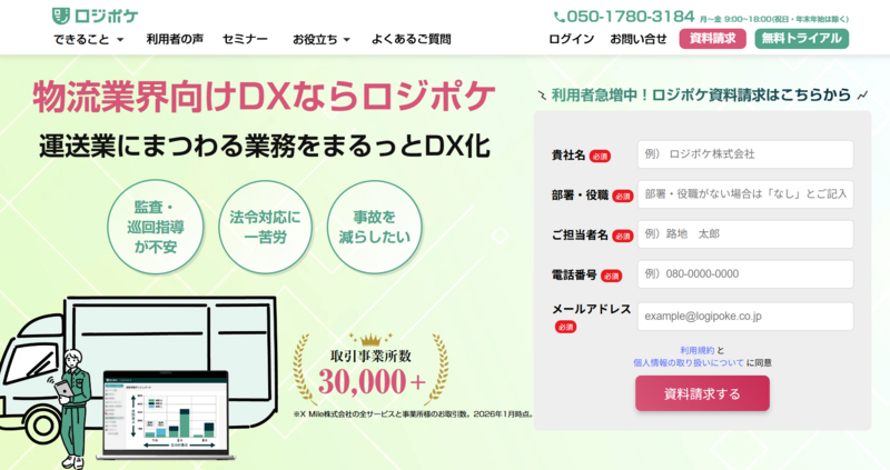 | ロジポケ | 要問い合わせ | 要問い合わせ | 運送業の人事・労務・配車業務をまとめてDX化 |