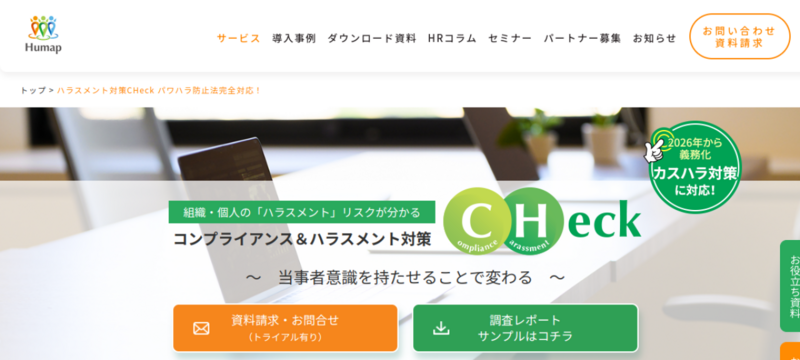 研修や外部相談窓口サービスも提供しており、ハラスメント対策を包括的に進められます。