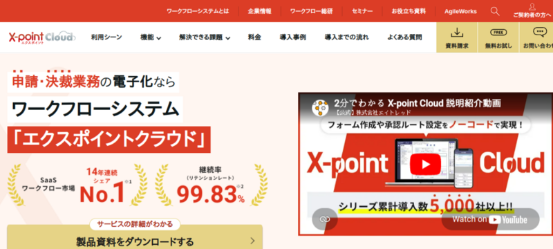 紙やExcelの申請書を部署で回覧しハンコを集めている企業の業務改善に向いているのが、株式会社エイトレッドが提供するX-point Cloudです。ノーコードで申請フォームと承認ルートを設計でき、PC・スマートフォン・タブレットから申請・承認が完結します。