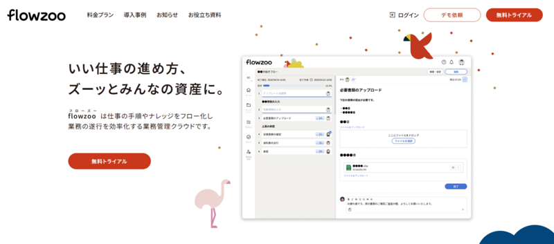全社の業務改革を推進する経営企画にとって、現場業務のブラックボックス化は施策実行の障壁になりがちです。flowzoo(フローズー)はBUSINESS-ALLIANCE株式会社が提供する業務管理クラウドで、業務フロー・ワークフロー・繰り返しプロセスを構造化して可視化できます。