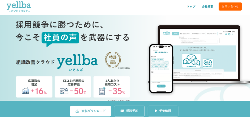 組織改善を進めたい経営企画にとって、現場の本音が見えないままでは施策が的外れになりがちです。yellba(イエルバ)は株式会社yellbaが提供する組織改善クラウドで、社員の本音を集め、共感を可視化し、改善アクションにつなげる仕組みを備えています。