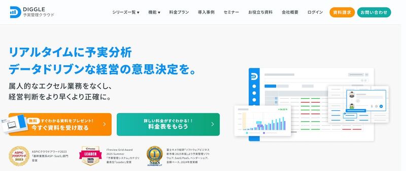 | DIGGLE | 要問い合わせ | 要問い合わせ | リアルタイム予実分析でデータドリブンな意思決定を支援 |