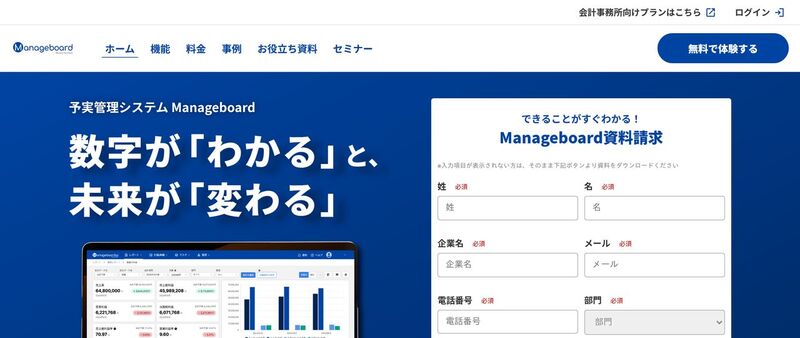 Manageboardは、マネーフォワードコンサルティング株式会社が提供する予実管理システムです。財務三表とKPIを同じ基盤で扱える点が訴求軸となっており、勘定科目から数字の理由を即座に追える設計が特徴です。
