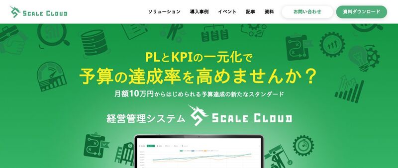 Scale Cloudは、株式会社Scale Cloudが提供する経営管理プラットフォームです。事業部のKPIと管理部のPLを有機的に結びつけ、結果指標と先行指標を同じ基盤で管理できる仕組みが訴求軸となっています。