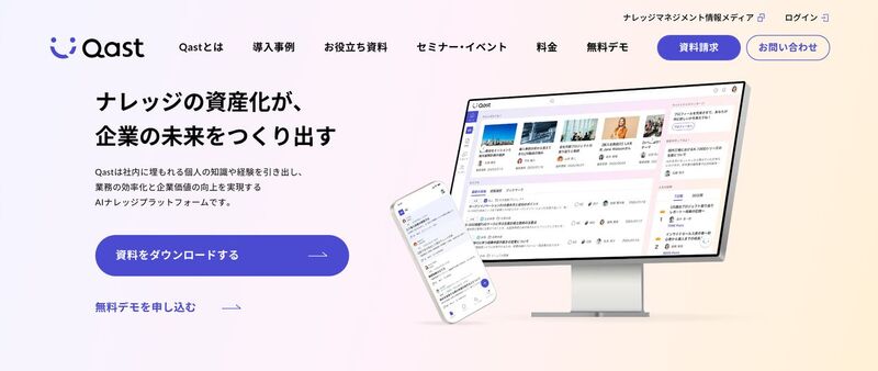 Qastは、any株式会社が提供するAIナレッジプラットフォームです。生成AIを活用して散在する社内情報を集約し、属人化したノウハウを組織の資産として蓄積できる設計が特徴です。